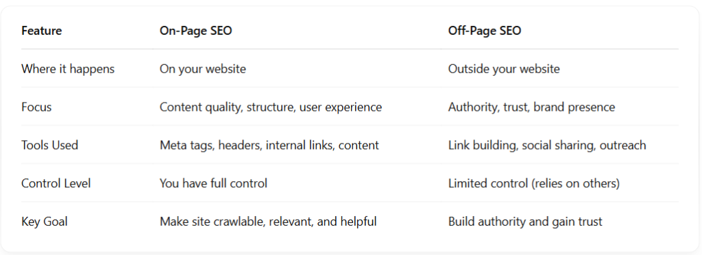 In this comprehensive guide, we’ll break down everything you need to know about On-Page and Off-Page SEO, explain the key differences, share expert tips, and show you how to strike the perfect balance between the two. If your website isn’t ranking as high as you’d like, this is the place to start.